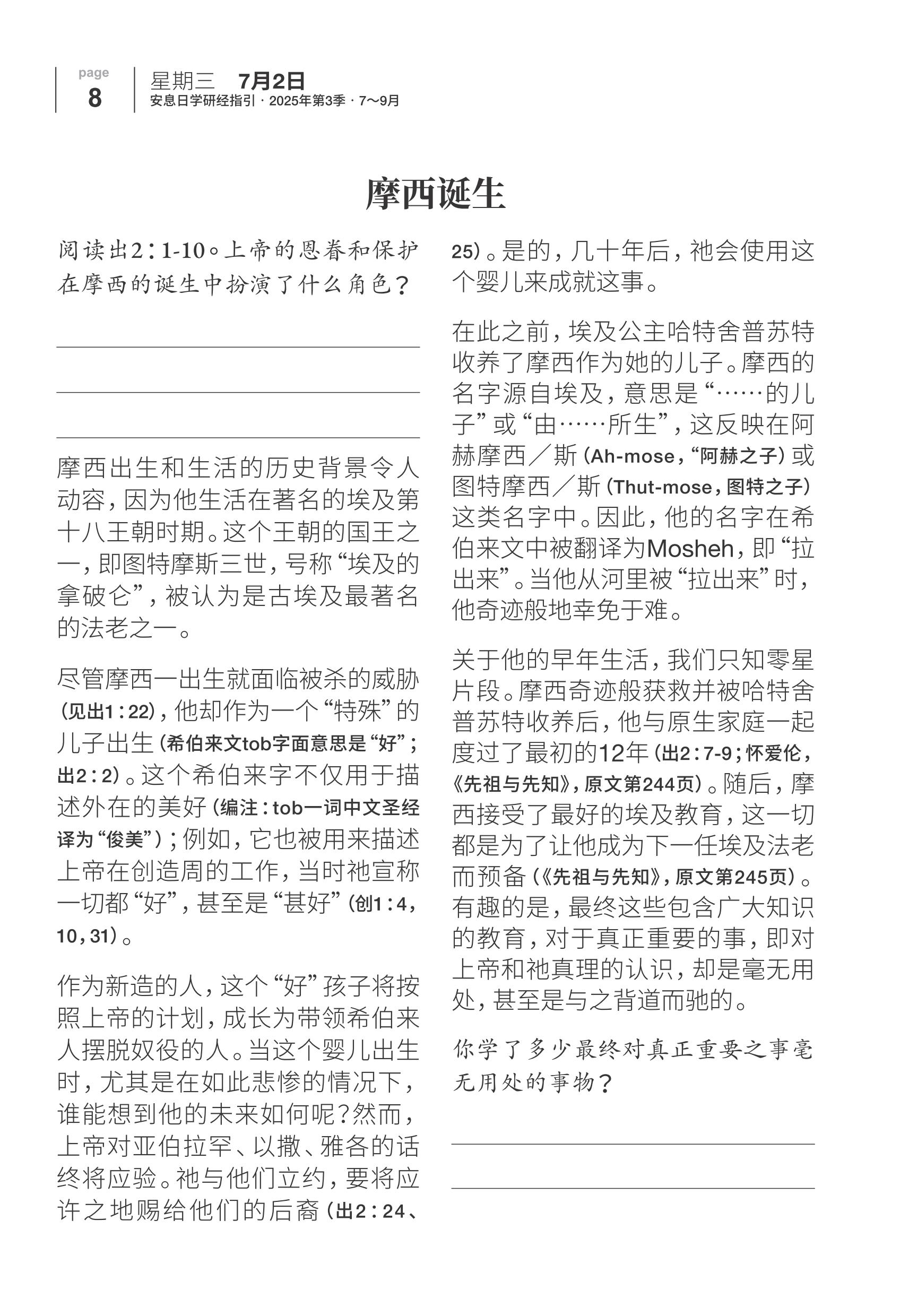 第1课:辖制:摩西的出生和时代背景 分享:韩天晓 | 7月1日,2025 https://www.yesuaiwo.site/wp-content/uploads/2025/07/辖制:摩西的出生和时代背景.m4a 喜欢作者,谢谢您的爱心 ▼ 您可以点击以下标签,查看更多的栏目专辑 安息日学 加微信防失联 首页